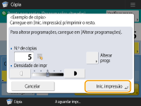 Pressione <Alterar programações> para alterar as configurações. <Ex. de cópia> será exibido após as configurações serem alteradas. Copie uma amostra novamente.