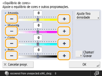 ![]() | Ajuste a densidade do amarelo, do magenta, do ciano e do preto separadamente. |