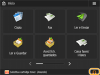 Quando o toner está perto de acabar ou já acabou, uma mensagem é exibida lembrando você de preparar um novo cartucho de toner ou realizar uma substituição de cartucho. Prepare um novo cartucho de toner ou realize uma substituição de cartucho de acordo com a mensagem exibida.
