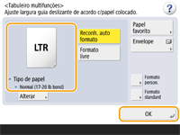 Confira o tamanho e o tipo de papel e pressione <OK>.