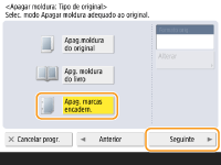 1 | Pressione <Apagar marcas encader.> <Seguinte>.![]() |