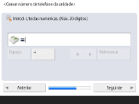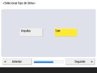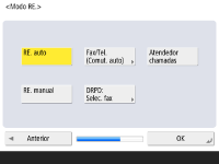 Especifique as configurações necessárias para usar a função de fax. ![]() Se a sua máquina não tiver uma função de fax, prossiga para a Etapa 10. Selecione o país/região se a tela de seleção aparecer e pressione <Seguinte>. ![]() ![]() Insira o número de fax e pressione <Seguinte>. Para informação sobre as configurações de fax, consulte Configurações da linha de fax. ![]() ![]() Pressione <Prog.>, insira o nome de usuário e pressione <Seguinte>. ![]() ![]() Selecione o tipo de linha e pressione <Seguinte>. ![]() ![]() Pressione <RE. auto> ao usar a função de fax somente ou <Fax/Tel. (Comut. auto)> quando um telefone ou fone estiver conectado à máquina e pressione <OK>. | |