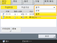 从下拉列表选择<复印>并显示正在等待的复印作业。