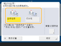 在<选择色彩>中选择除<自动(彩色/黑白)>以外的设置时,即使选择<仅白纸>,也会按照<全部色彩>进行操作。