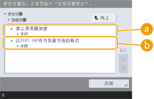 如将<以FIPS 140作为加密方法的格式> 设为 <打开>,可以使TLS通信加密方法符合美国政府批准的FIPS(联邦信息处理标准)140要求,但同时以下限制适用。 当为使用未获得FIPS认可的算法(低于RSA2048位)的TLS指定证书时,将出现错误。 如果通信目标不支持FIPS认可的加密算法,将出现通信错误。 <CHACHA20-POLY1305> 和 <X25519> 将不再可用 |