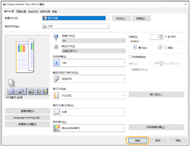 从下拉列表选择设置面板后,在每个面板上进行打印设置。