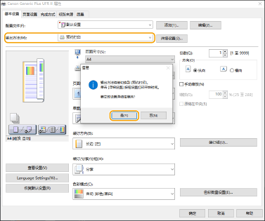 从[输出方法]中选择[预约打印],然后单击[是]。