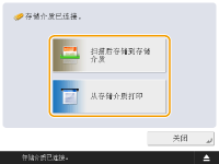 如果<连接存储介质时选择选项>设置为<打开>,则在插入存储介质时,会显示可用功能的快捷键。<连接存储介质时选择选项> ![]() 由于本机在睡眠模式时快捷键可能不会显示,因此应在机器从睡眠模式唤醒后插入存储介质。 |