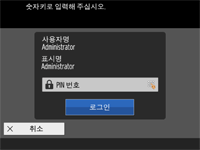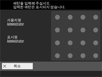 ![]() | 사용자 이름을 누릅니다. PIN 코드가 설정된 경우 화면의 지시에 따라 PIN 코드를 입력한 후 <로그인>을 누릅니다. ![]() 패턴 입력이 필요한 경우 화면의 지시에 따라 패턴을 입력합니다. ![]() |