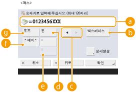 1 | 팩스 번호를 입력합니다. ![]() 팩스 번호 필드숫자 키를 사용하여 팩스 번호를 입력합니다. 필요한 경우에 부터 까지 입력합니다. <백스페이스> 팩스 번호 필드( )에서 커서 왼쪽에 있는 숫자를 하나씩 삭제합니다.![]() /![]() 팩스 번호 필드( )에서 커서를 왼쪽 또는 오른쪽으로 이동할 때 누르십시오. <톤>이 버튼을 누르면 "T"(톤)가 삽입됩니다. 펄스 다이얼을 사용하고 있더라도 톤 다이얼을 사용하여 "T" 다음의 숫자들이 전송됩니다. <R> 키기기가 PBX(Private Branch Exchange)에 연결된 경우 수신인을 입력하기 전에 이 버튼을 누릅니다. 이 버튼을 사용할 수 없는 경우 R키 설정을 등록해야 합니다. <R키 설정> <스페이스>읽기가 더 쉽게 숫자 사이에 빈 칸을 입력합니다. <포즈>이 버튼을 누르면 "P"(일시 정지)가 삽입됩니다. 해외로 팩스를 송신할 때 국제전화 식별 번호나 팩스 번호 뒤에 일시 정지를 삽입합니다. 이렇게 하면 연결 개선에 도움이 됩니다. ![]() 번호의 시작에 일시정지를 삽입할 수 있습니다. |