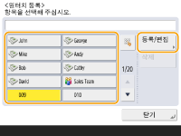 원터치 버튼에 등록되어 있는 수신인을 하나의 그룹으로 결합하고 단일 수신인으로 등록할 수 있습니다. 자세한 내용은 원터치 버튼에 그룹 등록을(를) 참조하십시오. 원터치 버튼에 등록되어 있는 수신인 정보를 변경 또는 삭제하려면 원터치 버튼에 등록된 수신인 편집을(를) 참조하십시오. 원터치 버튼에 저장된 수신인이 로컬 주소록에도 나타납니다. |