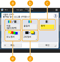 | 복사의 컬러 모드를 선택할 수 있습니다. 예를 들어, 컬러 원고를 흑백으로 복사하여 토너를 절약하거나 티켓을 빨간색 또는 파란색 등의 단색으로 복사하여 배포 날짜를 나타낼 수 있습니다. |
