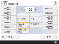 에서 복사 비율을 선택한 다음 <확인>를 누르십시오.