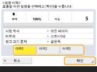 이전에 사용한 복사 설정 불러오기(이전 설정)