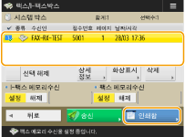 <상세정보>를 누르면 발신인 이름과 수신한 페이지 매수를 포함한 문서 관련 정보를 확인할 수 있습니다. <화상 표시>를 누르면 문서의 내용을 확인하고, 페이지를 선택 및 삭제할 수 있습니다.