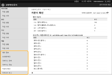 이미 처리된 문서의 로그 뿐만 아니라 대기중인 문서의 상태를 리모트 UI를 통해 확인할 수 있습니다. 또한, 에러 정보 및 소모품 잔량과 같은 기기의 상태도 확인할 수도 있습니다.