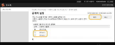 4 | 주소 목록을 공유할 그룹 선택 후 [확인]을 클릭합니다. ![]() |