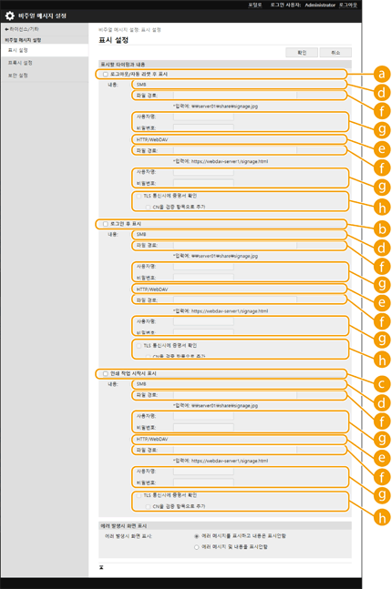 [로그인 후 표시]로그인 후 콘텐츠를 표시하려면 이 확인란을 선택합니다. 이 설정은 <로그인 화면의 표시 설정>을 <조작 시작시에 표시>로 설정한 경우에 활성화됩니다.