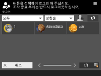 | | 이 방법을 사용하면 사용자 이름을 입력할 필요 없이, 제어판에 표시된 사용자별 아이콘을 눌러 로그인할 수 있습니다. 이 방법은 사용자가 로컬 장치에 등록된 경우에만 사용이 가능합니다. 무단 로그인을 방지하기 위해 PIN 또는 패턴을 설정할 수도 있습니다. 사용자 정보는 수동 및 자동으로 입력이 가능합니다( 사용자 로그인 방법 및 인증 장치 구성하기). |