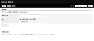要取得授權檔案必須具備下列資訊。MEAP 應用程式包裝上隨附的授權存取號碼 按下 (計數器/裝置資訊)按鍵時顯示在畫面左下方的本機「序號」。* 您也可以透過 SMS 畫面查看序號。 管理 MEAP 應用程式 |