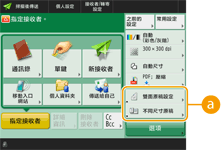 可將基本功能畫面顯示的設定按鈕(影印、傳真和掃描)變更為 <選項> 中的其他設定按鈕。在基本功能畫面放置常用設定按鈕,就能夠更有效地使用功能。此外,透過個人認證管理登入後,您可顯示針對每個使用者所自訂的不同基本功能畫面。