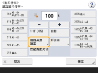 如果指定 <自動XY倍率>,請在 <選擇紙張> 中選擇紙張。如果沒有指定紙張尺寸,影印倍率會自動設為符合裝入紙匣 1 內之紙張的大小。