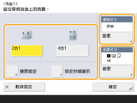 按下 <原稿尺寸> 中的 <變更>,可讓您選擇原稿尺寸,按下 <紙張尺寸> 中的 <變更>,可讓您選擇紙張尺寸。
