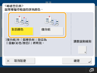 如果在 <選擇色彩> 中設定 <自動(彩色/黑白)> 以外的設定,即使選擇 <僅白紙>,仍會執行與 <全部顏色> 相同的操作。