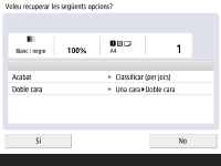 Opcions que es poden desar a <Opcions favorites> per a la funció <Llegir i desar> Configuració de la pantalla i les operacions per llegir a Desar