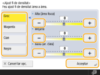 Ajusteu la densitat de groc, magenta, cian o negre per separat.