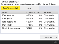 Podeu comprovar la quantitat restant de consumibles des de Remote UI (IU remota). Comprovació de l'estat de l'equip
