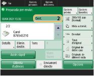 Consultar el nombre total de destinacions especificadesEl nombre total de destinacions especificades apareix a la part superior dreta de la pantalla. Això permet confirmar que el nombre de destinacions és correcte abans d’enviar.