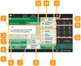 Mostra el nom i el número de fax de la destinació i el nombre de destinacions que heu especificat.