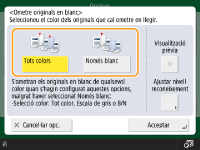Només es poden especificar destinacions de tipus <Correu electrònic> o <Fitxer> si s'estableix <Ometre originals en blanc>. L'enviament no es pot dur a terme si s'estableix una destinació amb un tipus que no sigui <Correu electrònic> o <Fitxer>.