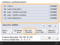 <Kontr. konfig. zařízení> na stejné obrazovce, můžete zkontrolovat volitelné doplňky nainstalované ve stroji.Informace týkající se podmínek počtu získáte u prodejce nebo servisního zástupce.