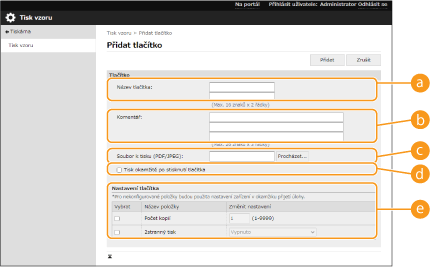 Zadejte informace o tlačítku a nakonfigurujte požadovaná nastavení.