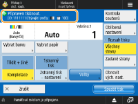 Pokud je v rámci správy ID oddělení nastaven limit stran, zobrazí se počet zbývajících stran. Více informací o nastavení správy ID oddělení a limitu stran viz část Konfigurace nastavení správy ID oddělení.