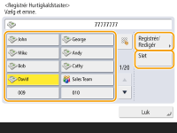 Vælg den hurtigkaldstast, du vil redigere eller slette.
