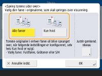 Maskinen kan registrere tomme sider under scanning og printe alle sider undtagen tomme sider.