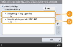 Hvis du indstiller <Formatkrypteringsmetode til FIPS 140> til <Til>, kan du få TLS-kommunikationskrypteringsmetoden til at overholde USA's statsgodkendte FIPS (Federal Information Processing Standards) 140, men følgende begrænsninger gælder.