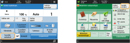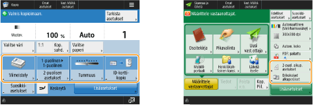 Voit vaihtaa asetuspainikkeet, jotka näkyvät perustoimintojen näytössä (kopio, faksi ja skannaus). Voit myös näyttää kullekin kirjautuneelle käyttäjälle mukautetut perustoimintojen näytöt.