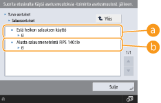 Jos määrität <Alusta salausmenetelmä FIPS 140:lle> -asetukseksi <Kyllä>, voit määrittää TLS-liikennöinnin salausmenetelmän noudattamaan Yhdysvaltain hallituksen hyväksymää FIPS (Federal Information Processing Standards) 140 -standardia seuraavin rajoituksin.