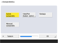 Valitse <Autom. vast.otto>, kun vain faksitoimintoa käytetään, tai <Faksi/Puh (Autom. kytkin)>, kun laitteeseen on liitetty puhelin tai luuri, ja valitse <OK>.