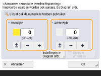 Selecteer <Voorzijde> of <Achterzijde> en voer het nummer in met <-> of <+>.
