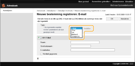 [Adreslijst voor beheerders] is alleen beschikbaar voor beheerders die zich aanmelden met beheerders- of apparaatbeheerdersbevoegdheden.