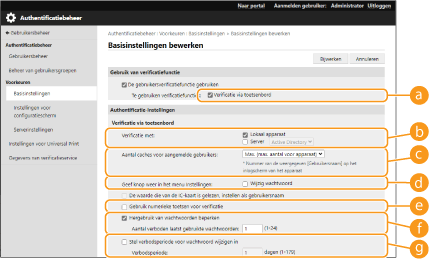 Configureer onderstaande instellingen bij gebruik van verificatie met het toetsenbord.
