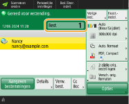 Stel <Sneltoets> in voor <Standaard scherm> als u na het scannen een bestemming wilt selecteren uit het scherm <Sneltoets>. Het vereiste werk voor het verzenden van gescande documenten naar dezelfde bestemming kan worden verminderd. <Standaard scherm>