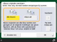 Alleen bestemmingen van het type <E-mail> of <Bestand> kunnen worden opgegeven wanneer <Blanco originelen overslaan> is ingesteld. Verzenden kan niet worden uitgevoerd als een bestemming met een ander type dan <E-mail> of <Bestand> is ingesteld.