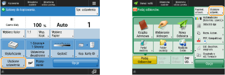 Jeżeli często używana jest określona kombinacja ustawień kopiowania, faksowania lub skanowania, przydatne może być zarejestrowanie tych ustawień jako <Ustawienia ulubione>.