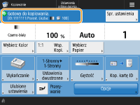 Wyświetla status ustawień, takich jak proporcja kopiowania, format papieru i liczba kopii. Upewnij się, że potwierdzono ustawienia, aby rozpocząć prawidłowy proces kopiowania. Aby zmienić ustawienia, należy nacisnąć na przycisk znajdujący się pod wyświetlaną sekcją.